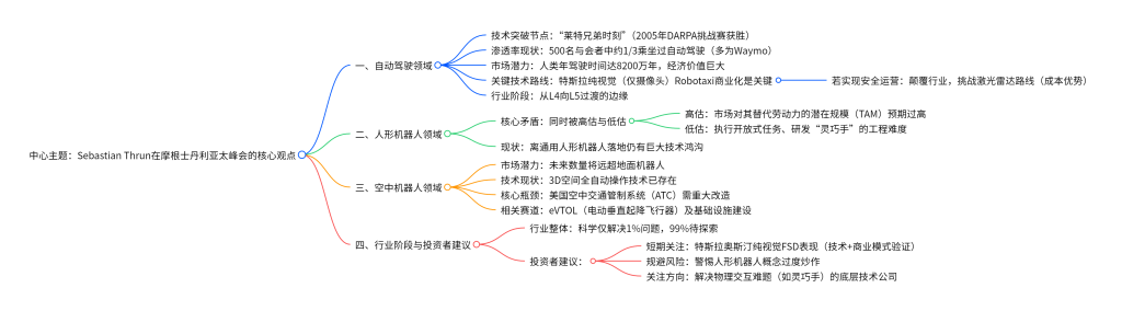 - “莱特兄弟时刻” 已过:Thrun 指出,自动驾驶的关键技术突破(类比飞机发明的 “莱特兄弟时刻”)早在 2005 年他赢得 DARPA 挑战赛时便已实现。